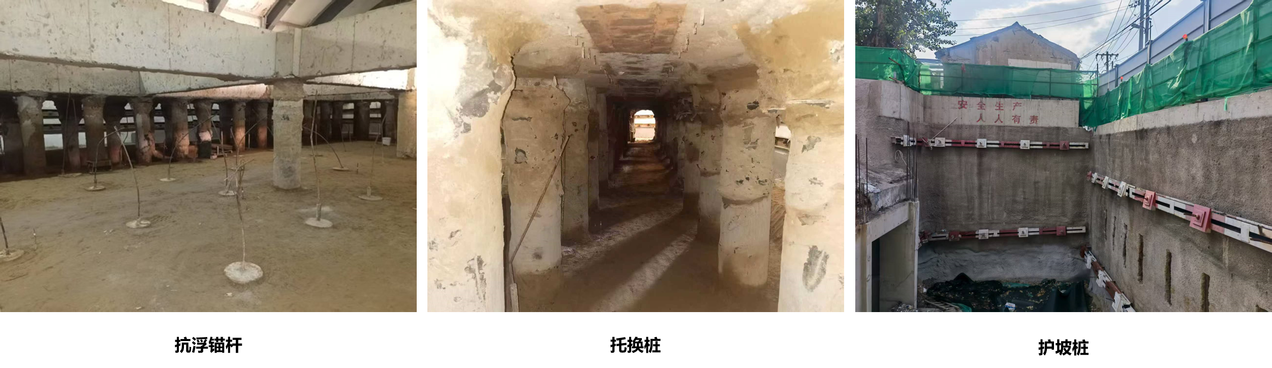 案例一:前門地下城是中軸線上保留完好且利用開發的早期人防工程,也是典型的城市更新地下結構改造加固工程。本項目施工400mm護坡樁、大廳托換樁、以及300mm抗浮錨桿,其中托換樁樁長達19.5m。采用本分體式低凈空多功能履帶鉆機,成功實現了大廳托換加固工程和抗浮工程施工,助力“北京地下城”改造升級為人防博物館體驗中心。