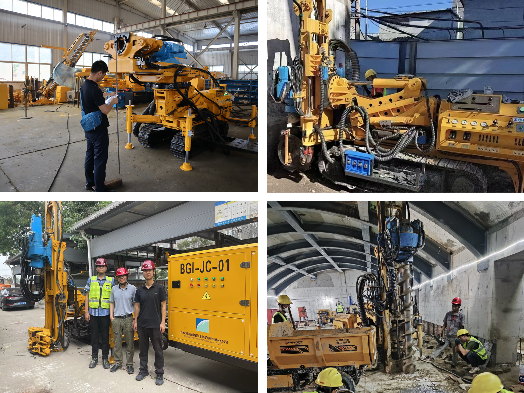 在城市更新行業背景下,基于傳統設備無法在有限空間施工的痛點,北勘院依托重點研發項目,精準分析市場需求,集中開展技術攻關,成功研制了“低凈空多功能鉆機”專利設備,設備兼具大功率、微尺寸、多功能特點,精準定位于低凈空巖土治理作業難題,形成兩種動力模式下設備及鉆桿鉆具產品體系,為城市更新特殊作業環境施工難題提供了新的北勘解決方案。