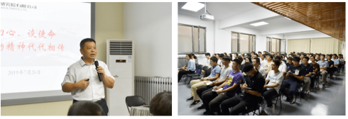 2019年7月26日,黨委書記、董事長徐宏聲以“憶初心,談使命,讓北勘精神代代相傳”為主題,為院黨委下屬13個黨支部近兩年新入職的93名員工講述了一堂生動的黨課。徐宏聲書記從人民英雄紀(jì)念碑背后的故事揭開北勘文化歷史傳承的序幕,解讀了北勘人60年來的初心與使命、責(zé)任與擔(dān)當(dāng),號召青年北勘人要繼續(xù)傳承發(fā)揚北勘文化,在企業(yè)發(fā)展的這場接力賽中,一棒接一棒跑下去,為實現(xiàn)北勘夢不斷奮斗!