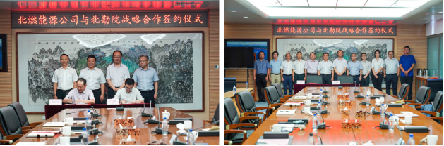 2019年9月19日,我院與北京燃氣能源發展有限公司戰略合作簽約儀式在北京燃氣集團隆重舉行,高文明總經理、陳斌總經理分別代表北勘院與北燃能源公司共同簽署了《戰略合作協議》。本次戰略合作是北勘院與北燃能源公司在副中心6#能源站項目及冬奧會、雄安新區等重點區域項目的深入合作背景下展開,是雙方期待已久的強強聯合,對促進雙方在能源領域拓展具有重大意義。