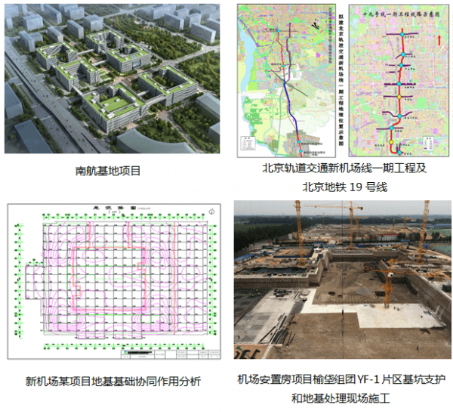 北勘院服務于新機場建設前后歷時7年,貫穿新機場整個建設生命周期,涉及專業包括巖土工程勘察、水文地質勘察、能源勘查、地質災害評估、地基基礎協同作用分析、基坑圍護和地基處理的設計與施工、地基檢測與監測及建筑物沉降觀測等,全方位為新機場建設保駕護航。