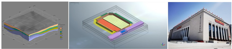 我院為中國共產黨歷史展覽館這一重大工程提供了包括地質災害評估、地震安評、工程勘察、水文地質勘察、管線探測、氡檢測、基坑支護及地下水控制設計、水影響評價等巖土工程一體化服務。通過精心的策劃、優質的服務和勇于擔當的實干精神,為工程的順利完成提供了強有力的技術支撐。中國共產黨歷史展覽館周邊環境條件復雜,緊鄰大屯路隧道及運營地鐵15號線,對變形控制要求極為嚴格。我院結合工程特點及難點,采用區域法和場域法相結合的抗浮水位分析、非封閉式降止水分析、同步近接地鐵和公路隧道的深基坑一體化分析、有效土體注漿加固作用效果分析等多種先進的技術分析方法,提出了現狀錨索切除工藝、全護筒跟進成樁等多種工程措施,既保障了緊鄰地鐵及公路隧道的正常運營,又為項目及時、順利開展提供了技術支撐,創造了良好的經濟和社會效益。