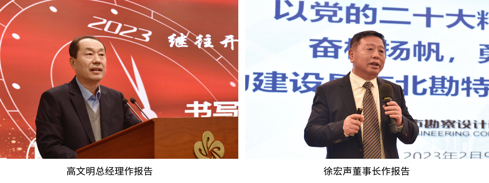 2月9日,北勘院隆重召開2023年工作會暨三屆八次職代會,黨委書記、董事長徐宏聲,黨委副書記、總經理高文明作主題報告,總結回顧過去一年的工作,精心規(guī)劃部署新一年重點任務。院中高層領導及職工代表出席大會。