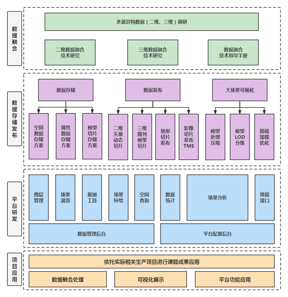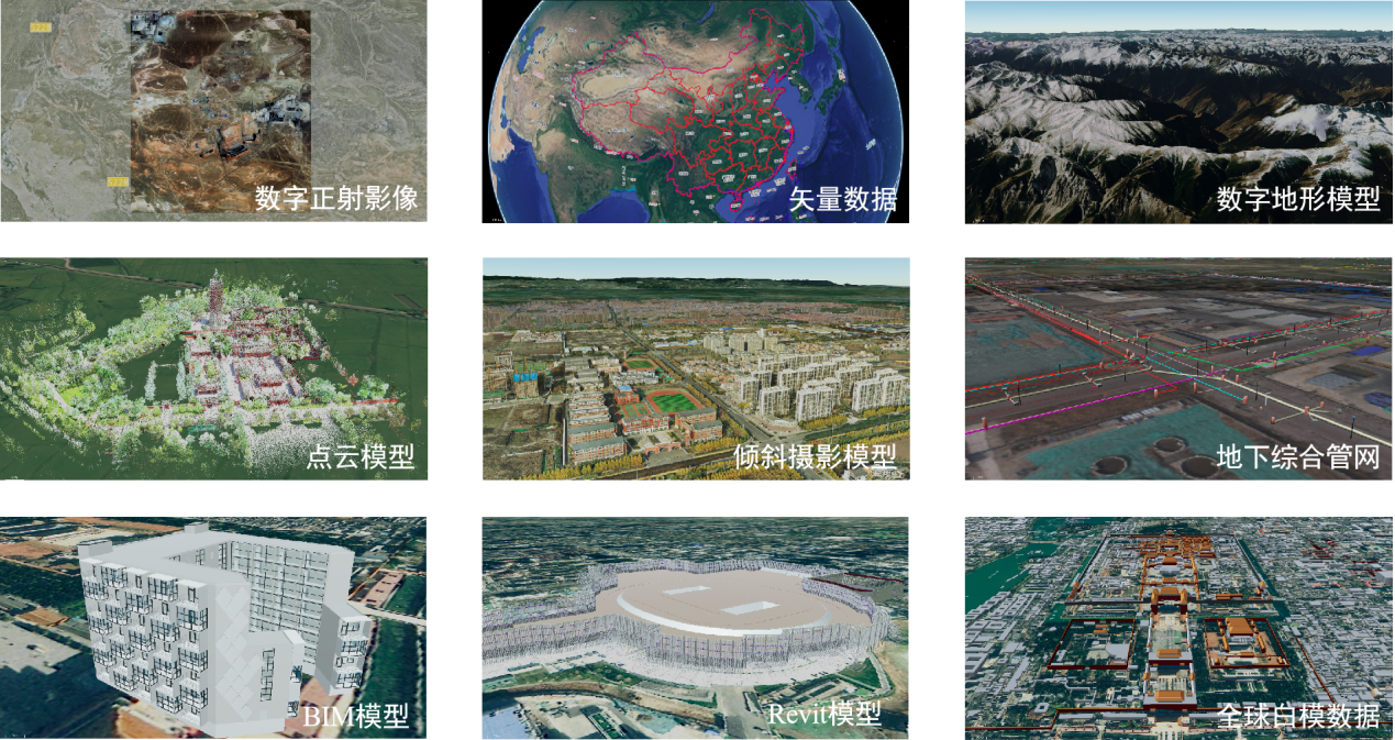 基于通用GIS數據(遙感影像、數字地形模型、傾斜攝影模型、點云及BIM模型等),通過數據切片算法,研究三維原始數據向場景數據轉換技術方案,基于坐標參考、數據格式、屬性掛接、紋理壓縮及模型輕量化,實現多源異構二三維數據融合。